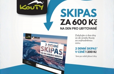 Ubytujte se u nás a lyžujte výhodně v Ski areálu Kouty. Pro naše ubytované hosty je připraven zvýhodněný dvoudenní skipas za 1 200 Kč, platný od 5. 1. 2026 do konce zimní sezóny. Využijte skvělou cenu a užijte si dva dny na svahu.